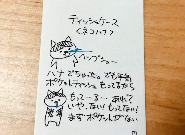 ▼這隻大噴鼻水的貓咪,就是「ポケファス(pokefasu)」系列的作品之一。「原本以為自己有帶面紙,想說鼻水噴出來也沒關係,結果發現自己不但沒帶面紙,身上連口袋都沒有!」