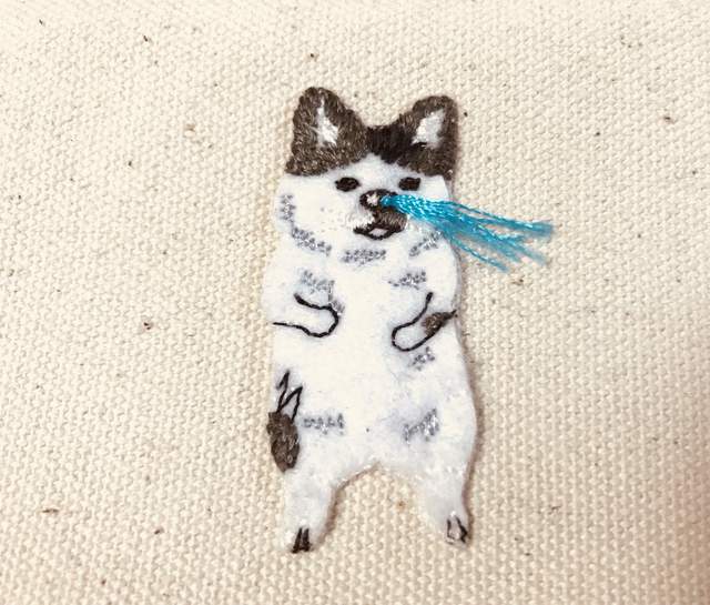 ▼「ポケファス(pokefasu)」被網友們戲稱為「不正經動物刺繡」,繡品的主角都是貓貓狗狗等動物,牠們的行為擬人化,還非常蠢萌,總是在做丟臉的事,比如噴鼻水、噴牛奶等等。