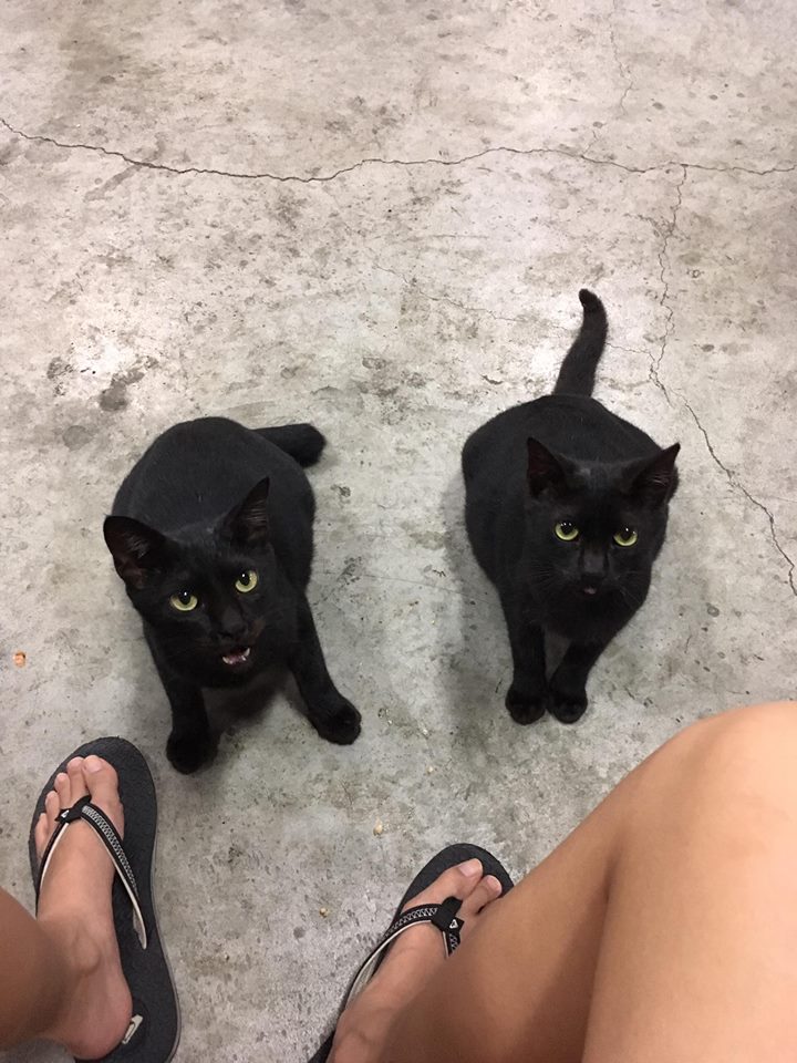 感覺越餵越多,黑貓家族全都跑來了!牠們皮毛一樣,長得也很像,應該是一家人吧,全家出動賣萌討食,喜歡貓的人心都要融化了。有能力的話幫一下身邊的浪浪,牠們會很感激的。