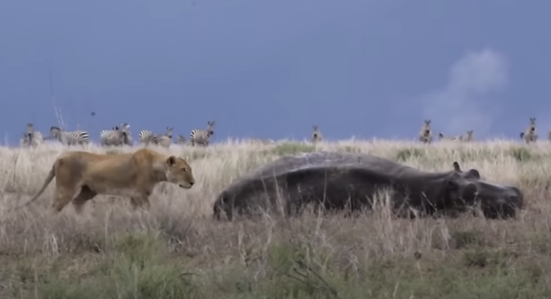 不要惹河馬! 獅子趁牠午睡「想偷襲」 下一秒被反殺GG了!