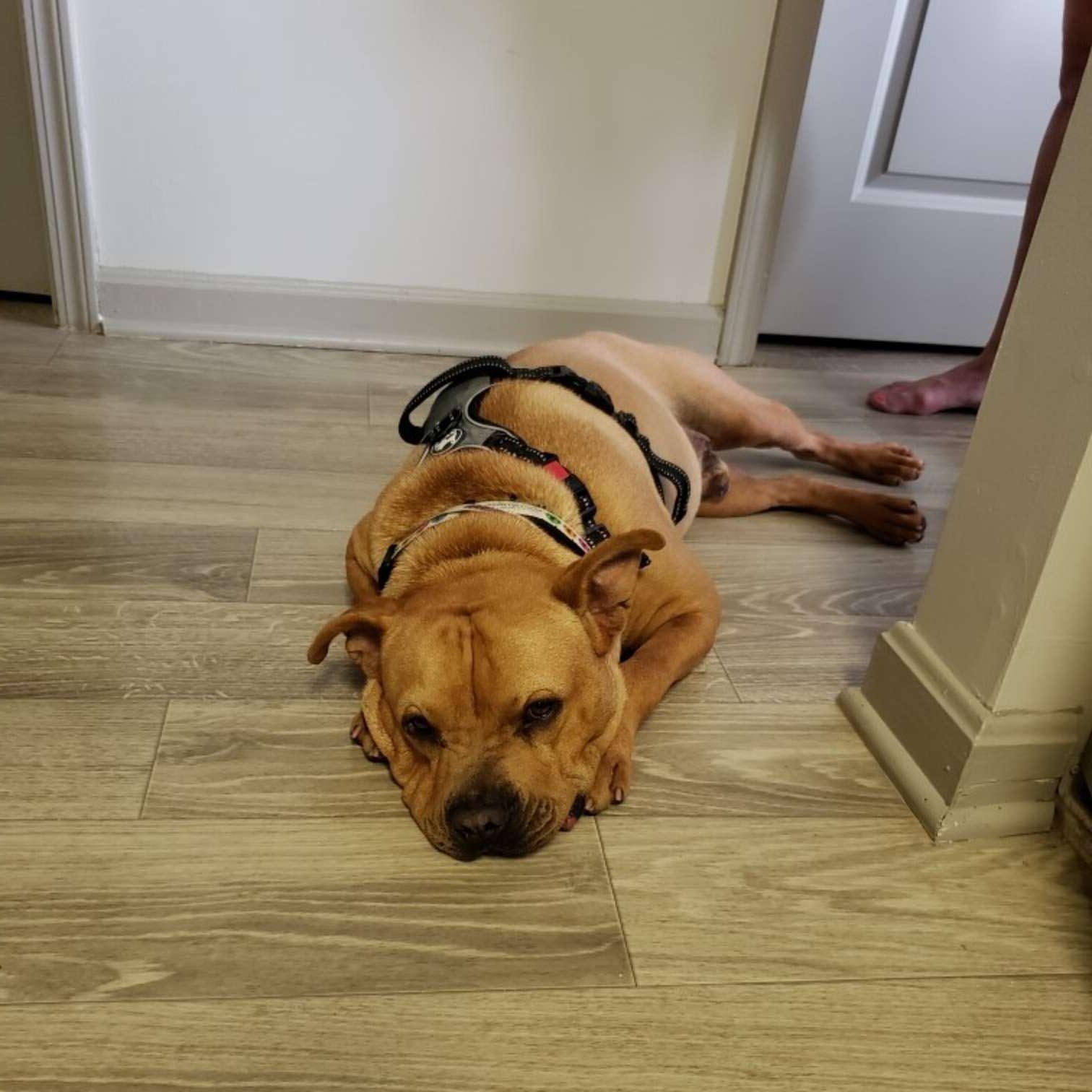 2022年01月28日美國肯塔基人道協會有一隻斯塔福郡鬥牛㹴米克斯Hendrix,牠已經等了1年,終於找到了適合的領養人。領養人填好申請表,約好時間來接牠回家。那天Hendrix穿上漂亮的衣服,準備迎接新家人,但對方卻始終沒有出現。