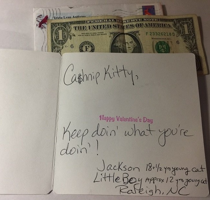 ▼原來這間辦公室位於繁華的地段,每天有很多人從門口經過。路人隔著玻璃門看到CASHnip,就將鈔票塞進門縫逗牠玩,結果貓咪一下子就把鈔票搶走了。久而久之,經常有人故意拿鈔票來逗CASHnip。
