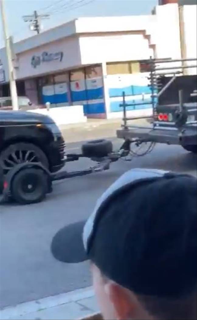 ▼詹姆斯柯登與小賈斯汀乘坐的車子被拖車拉著走,全程不需要自己駕駛。
