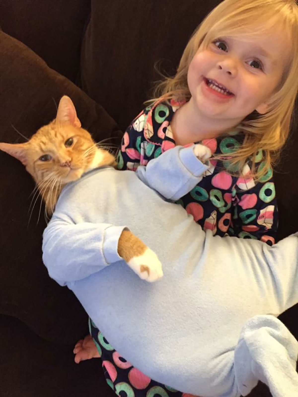 ▼後來Erin戀愛、結婚、生子,Bailey都陪在她身邊。牠與3個小主人感情很好,特別是4歲小主人Abby,一人一貓形影不離。