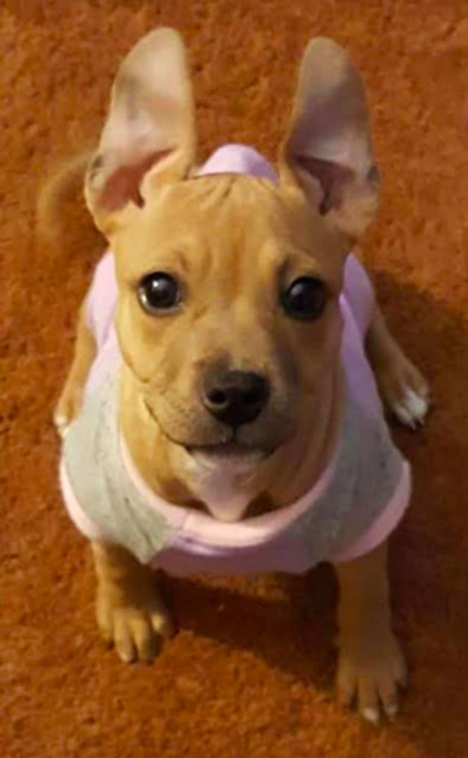 2022年02月02日美國網友Jen Deane非常喜歡動物,她聽說喬治亞州有一窩小奶狗需要救助,於是連忙趕了過去。那是一窩棕褐色的小狗狗,看起來非常可愛。小狗狗們都長著大大尖尖的耳朵,只有一隻眼睛大大的狗狗,耳朵像玫瑰花瓣一樣,向內捲曲著,看起來與眾不同。