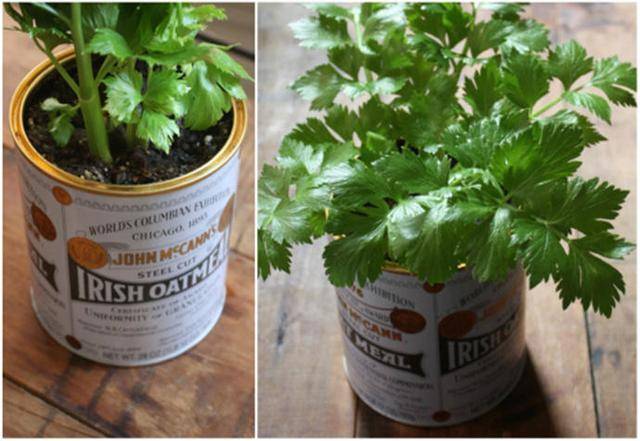 ▼「旱芹」也是很好種的蔬菜!一樣將旱芹根洗淨後放入水杯中,放到光線充足溫暖的地方,一週後就能長出綠油油的葉子。將它移種到盆栽後,沒多久就能長成一盆旱芹了!