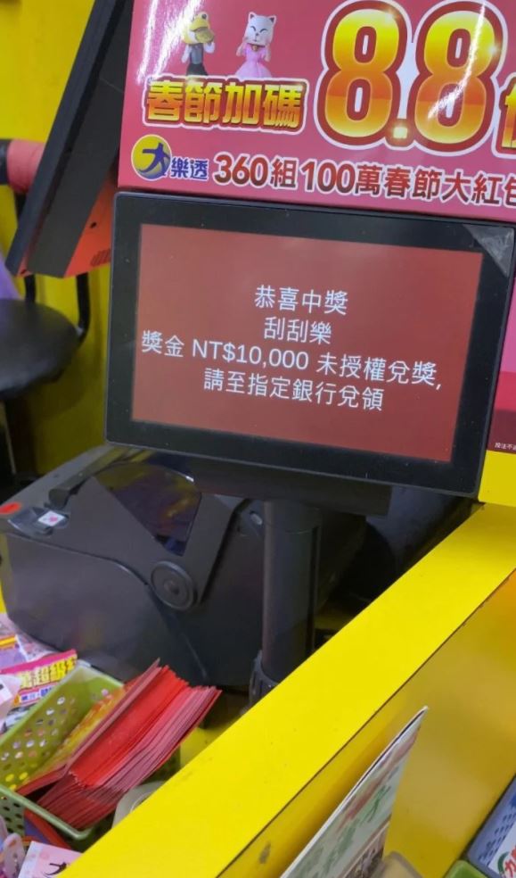 這名女大生表示,她和高中同學心血來潮去買刮刮樂,她第一張先買2000元品項的刮刮樂,結果直接「貢龜」。彩券行老闆笑說「一本只有4至5張會槓龜」,讓她不知道自己太幸運還是太衰?接著她又買了一張2000元刮刮樂,直接爽中5000元。
