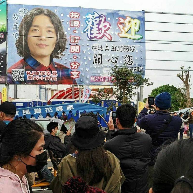 ▼之前「廉傑克曼」張廉傑就在影片中說,想要搞一個「大一點」的過年企劃,於是他在故鄉彰化田尾公路花園的圓環承租了一個看板。因為下方就是附近唯一的公廁,所以他特別寫上了「在地A田尾囝仔關心您尿尿的地方」這句話,成功創造話題,也讓這個看板成為了當地的打卡熱點。