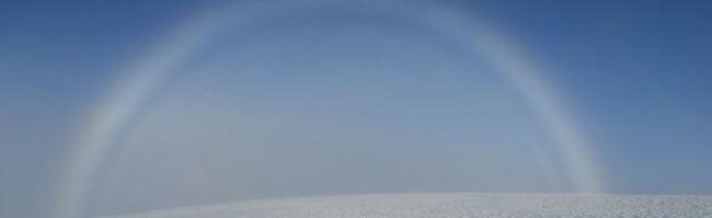 ▼Melvin按下快門幾分鐘後,白色彩虹就消失了。NASA解釋說,這種沒有顏色的彩虹是由形成霧氣的微小水珠組成的,也叫「霧虹」(fogbow),是一種類似彩虹的天氣現象,但水滴非常小。除了白色,霧虹有時候還會呈現出淡淡的藍色和微紅色。