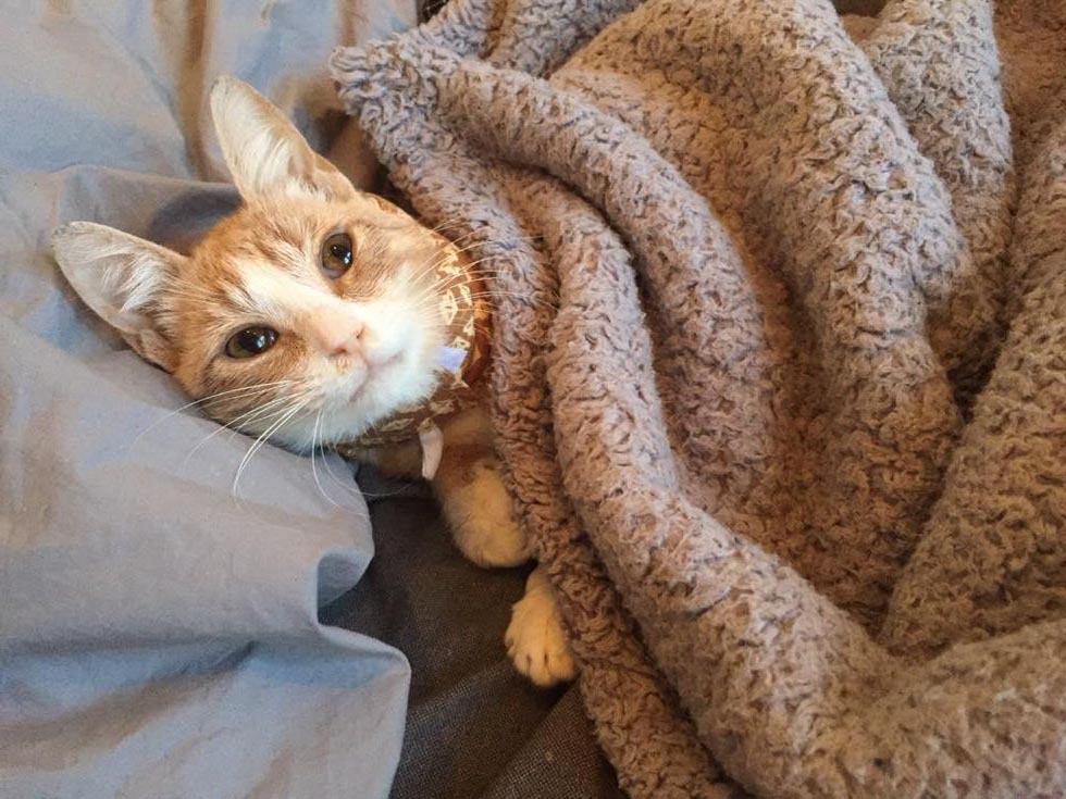 ▼Rebeccah原本想暫時照顧Clayton,等牠恢復健康就幫牠找永遠的家。但這隻堅強、可愛的貓咪徹底擄獲了她的心,她無法將Clayton送走,於是正式收養了牠。