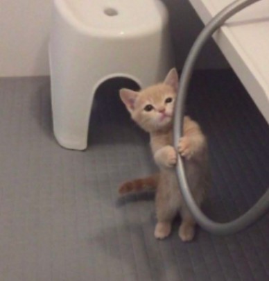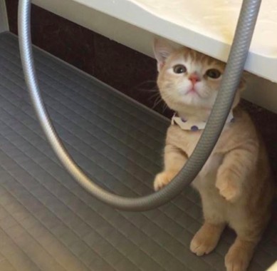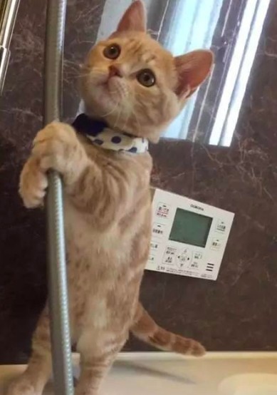 可以鼻要洗澡嗎? 奶橘喵緊抱水管「無辜電波求主人」:倫家真的很乾淨啦~