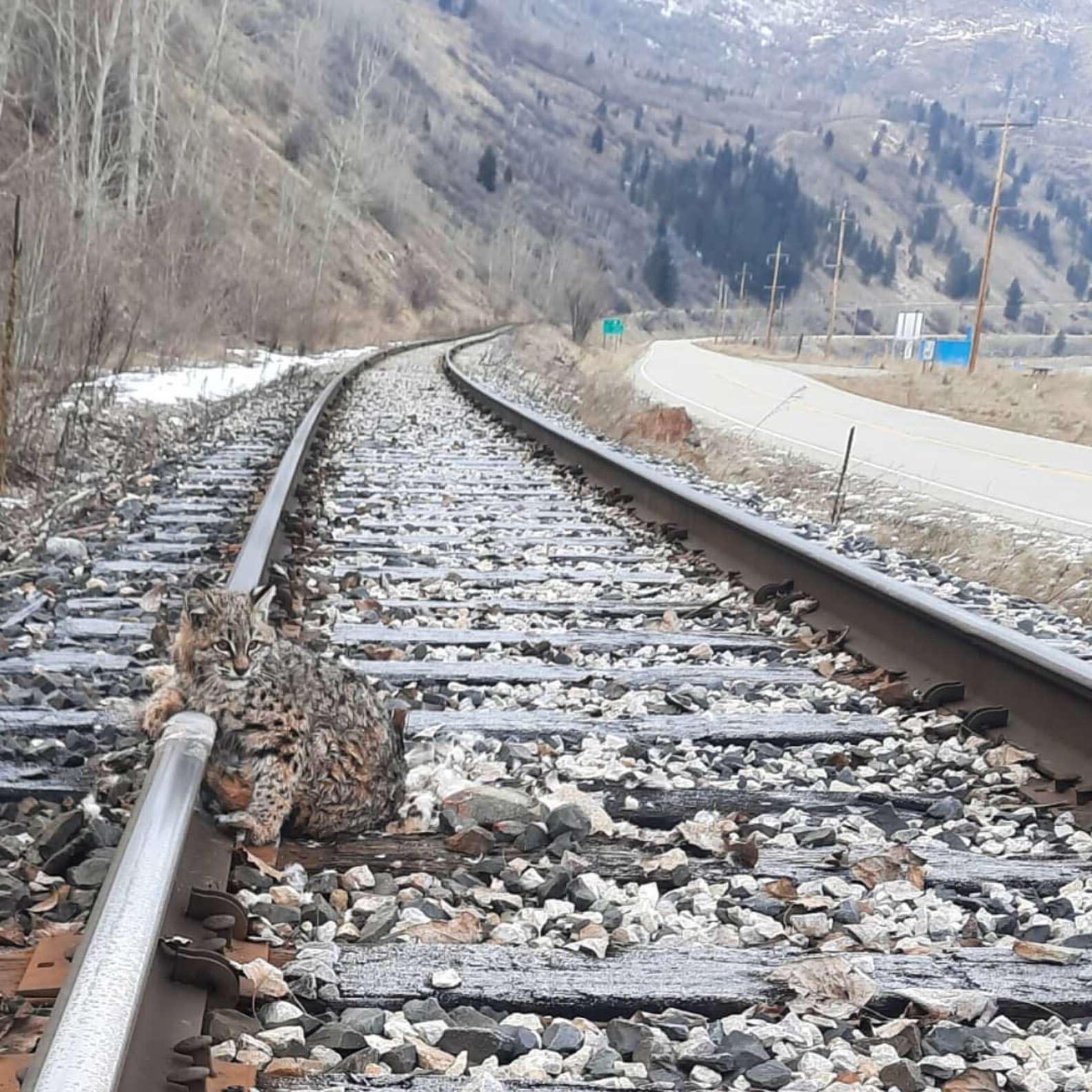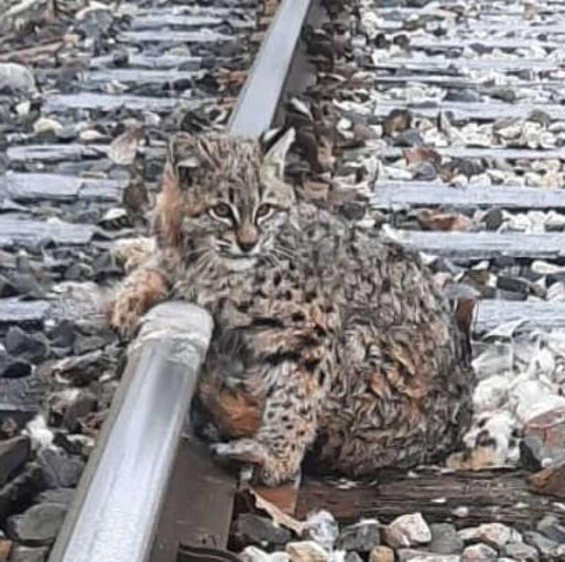 2022年02月18日美國有一位鐵路工作人員Coby Reid,不久前他在洛磯山脈下的鐵軌附近進行例行性檢查時,意外發現了一隻小山貓。牠坐在軌道中間,將一隻前爪倚在鐵軌上,就像躺在扶手椅上休息一般,非常愜意。但Coby很快就發現,那隻小山貓不像看起來那樣輕鬆。