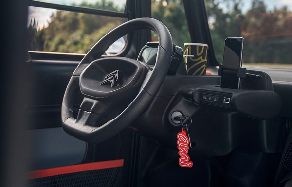 ▼Electroheads團隊拍攝了一段開箱影片,從影片中可以看到,雪鐵龍Ami車內空間的設計非常精巧,雖然沒有中控液晶螢幕,但能收納各種小物,還能讓車主直接將手機充當車機放在中間,透過My Citroën app就能操作功能。