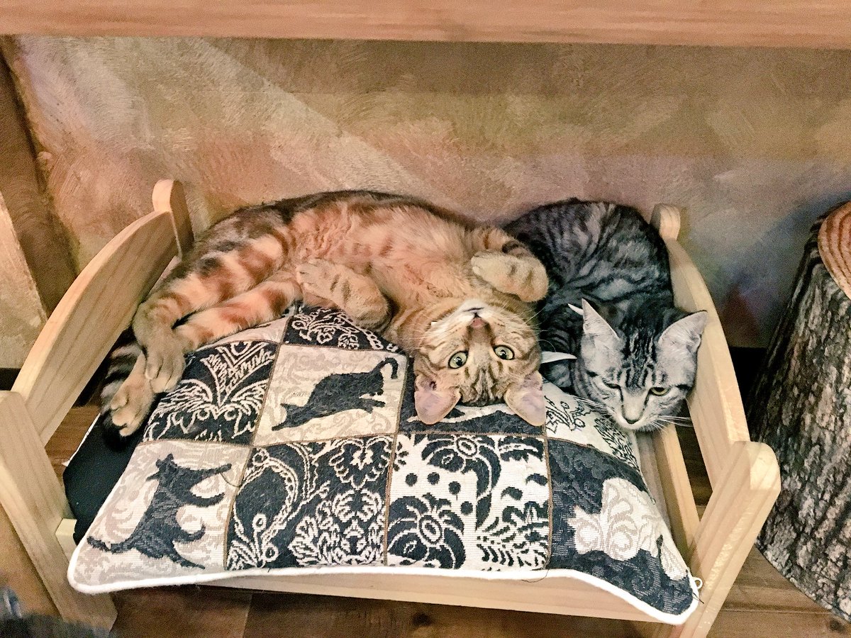 ▼橘貓的名字是「なつ」(夏天),是個帥氣的男孩子;小白貓則叫「こはる」(小春),是個軟萌的女生。