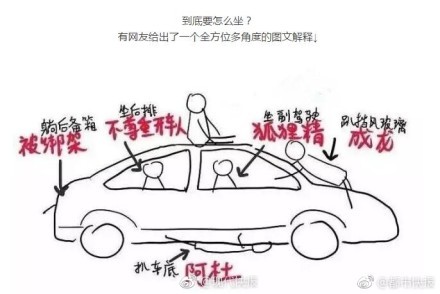 ▼由於討論的太熱烈,還有網友做出搞笑圖,表示坐副駕的就是狐狸精、坐後面是不尊重人、擋風玻璃前應該是成龍、車後是綁票,車底下則是阿杜。