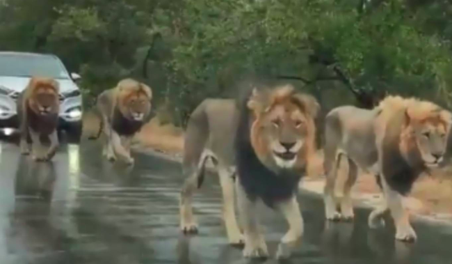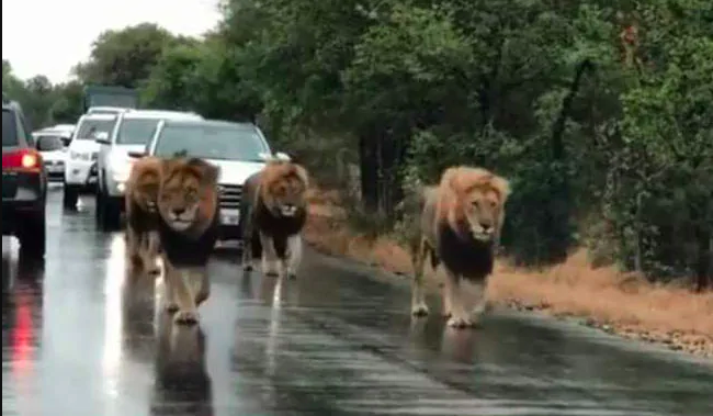 ▼那天一群威風凜凜的獅子在馬路上大搖大擺散步,牠們步伐從容,無視身後的車子。哪怕馬路上三線道的車輛排成一條長線,塞車塞到人崩潰,也沒人敢說什麼。司機們喀擦喀擦不停拍照,覺得很榮幸。