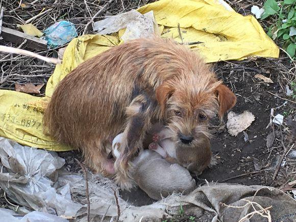 ▼最後來到一個垃圾桶旁邊的草叢,浪浪對著草叢叫了兩聲,不一會衝出兩隻可愛的小毛孩。兩個小傢伙撲倒媽媽懷裡,開心的吃喝奶,好心人徹底被這一幕感動了。