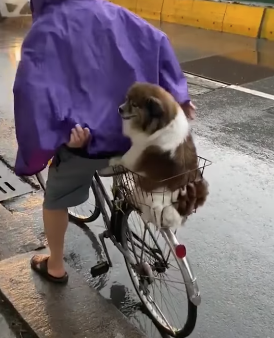 2022年02月18日夏天經常下陣雨,上午還晴空萬里,下午就電閃雷鳴。這樣的天氣很煩人,但有時也會出現暖心的畫面。最近一位網友在樓下躲雨時,就看到一位阿公騎車載狗狗離開。他們應該剛剛散完步,遇到下雨天就快點回家,狗狗熟練跳上腳踏車後座的畫面超暖心~