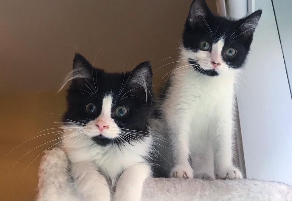 2022年02月18日今年早些時候,加拿大蒙特婁(Montreal)的動物救援組織「Chatons Orphelins Montréal」接獲通報,稱一間農場裡有4隻小奶貓需要幫助。救援人員很快趕到農場,將那4隻不到5週大的小奶貓帶去看獸醫。其中2隻小貓身上的毛皮黑白相間,長得很相似,牠們還緊緊挨在一起,看起來很親密。