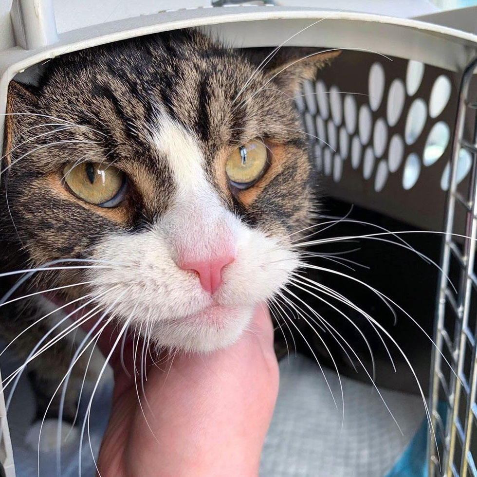 ▼以前Steph和Francis將Granpruno裝進寵物箱帶牠出門時,牠會表現得很害怕。現在牠已經無所畏懼,還會跟主人一起外出散步。Steph和Francis決定照顧牠一生,讓牠真正成為這個家中的一員。