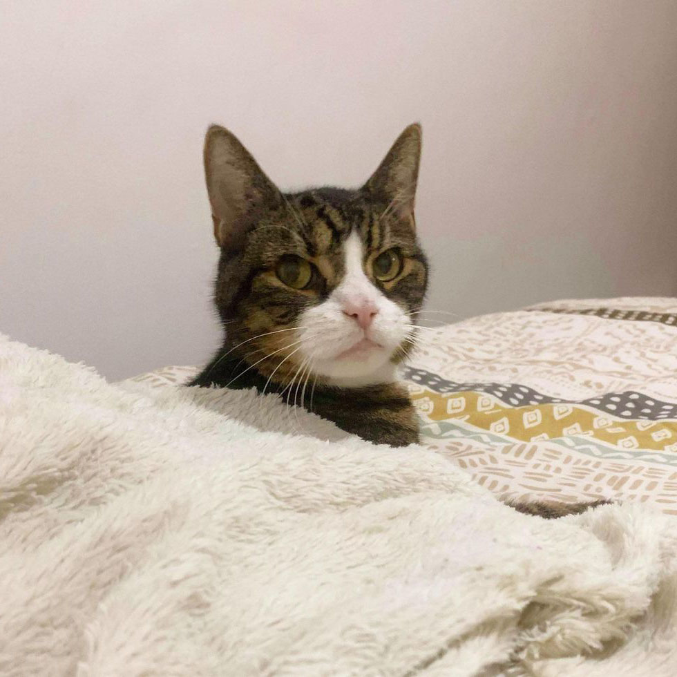 ▼Steph和Francis給貓咪準備了食物,然後帶牠到當地的動物救援中心做檢查。獸醫估計Granpruno已經9歲了,牠患有甲亢,需要接受治療。Steph和Francis將牠接回家寄養,牠顯然非常喜歡這裡,馬上就跳到床上安心睡了過去。
