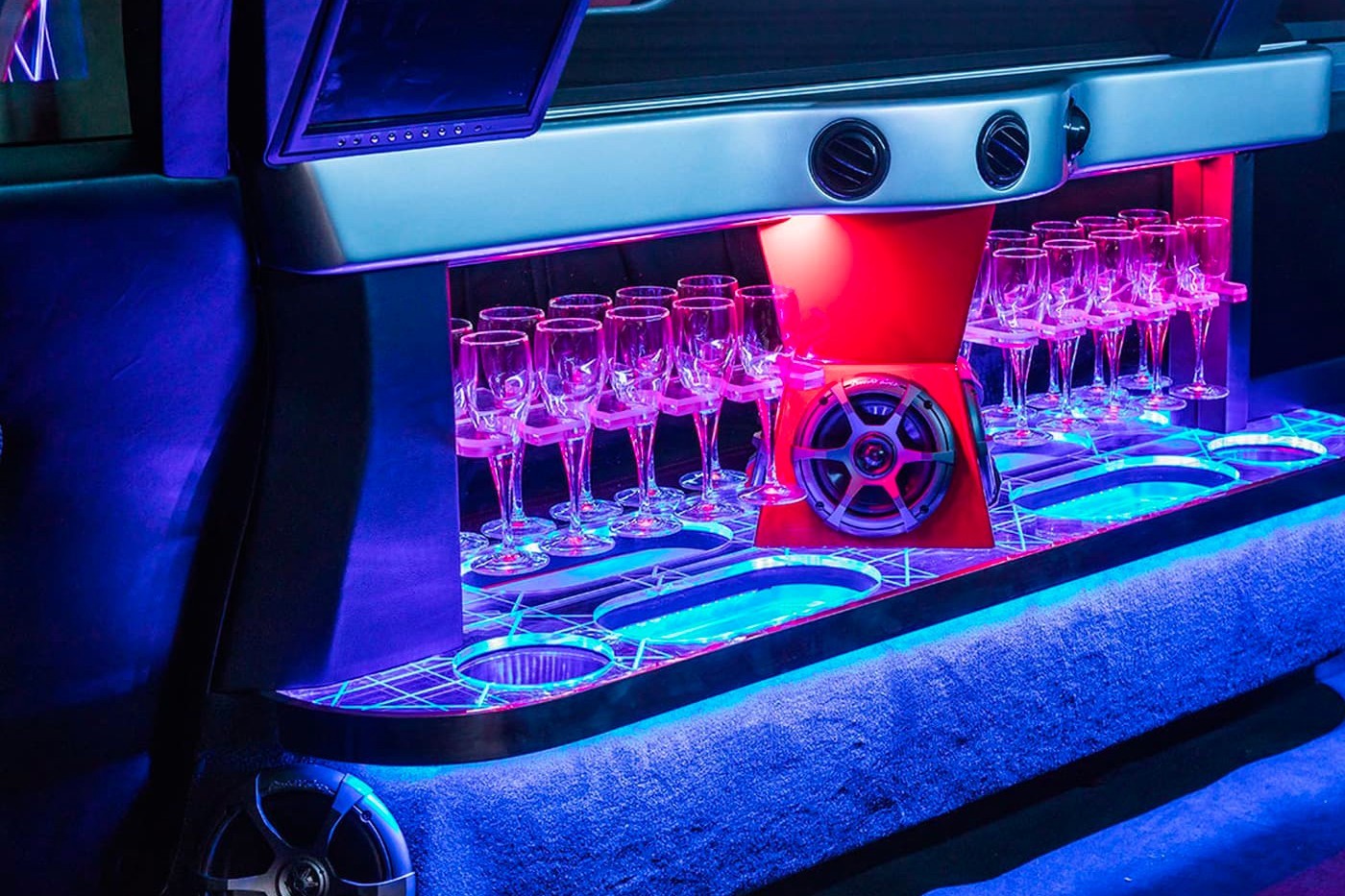 ▼這輛豪華轎車保留了駕駛艙的雙人空間配置,後座空間則能容納8個人。車內有LED照明、電影環繞聲系統、小型酒吧、電視螢幕,是一個設備齊全的玩樂空間,很適合用來開趴。