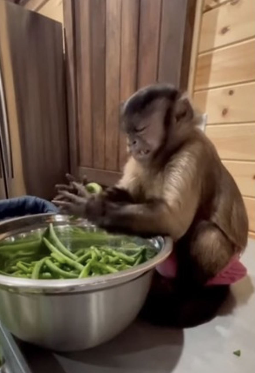 @lifewithgaitlyn Moms best helper! Helping snap green beans! #gaitlynrae #greenbeans #helper #working #gardner #teamwork #capuchin #snap #mamagirl #asmr #cook #chef