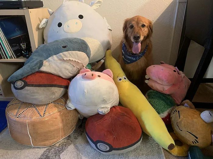 ▼飼主表示,小波從小就養成了這個習慣,就像一些人的「小被被」一樣,這些絨毛娃娃玩具對牠就像安全毯的效果一樣,會帶給牠無比的安全感。