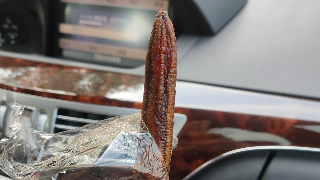 ▼從原po曬出的照片可以看到,她手中的棕色棒狀物長度不到10公分,外表被烘烤成焦糖色,並用塑膠紙包裝。原po問:「這…有人知道是啥嗎?從沒看過的讓我知道不孤單,生平第一次看到吃到。」