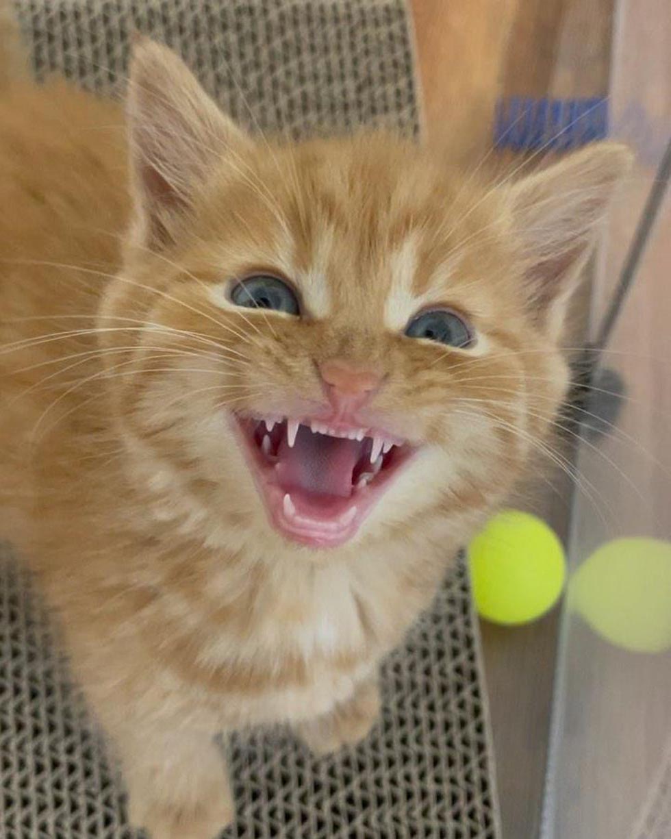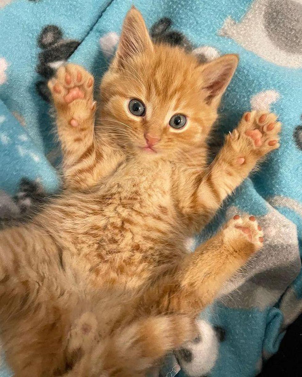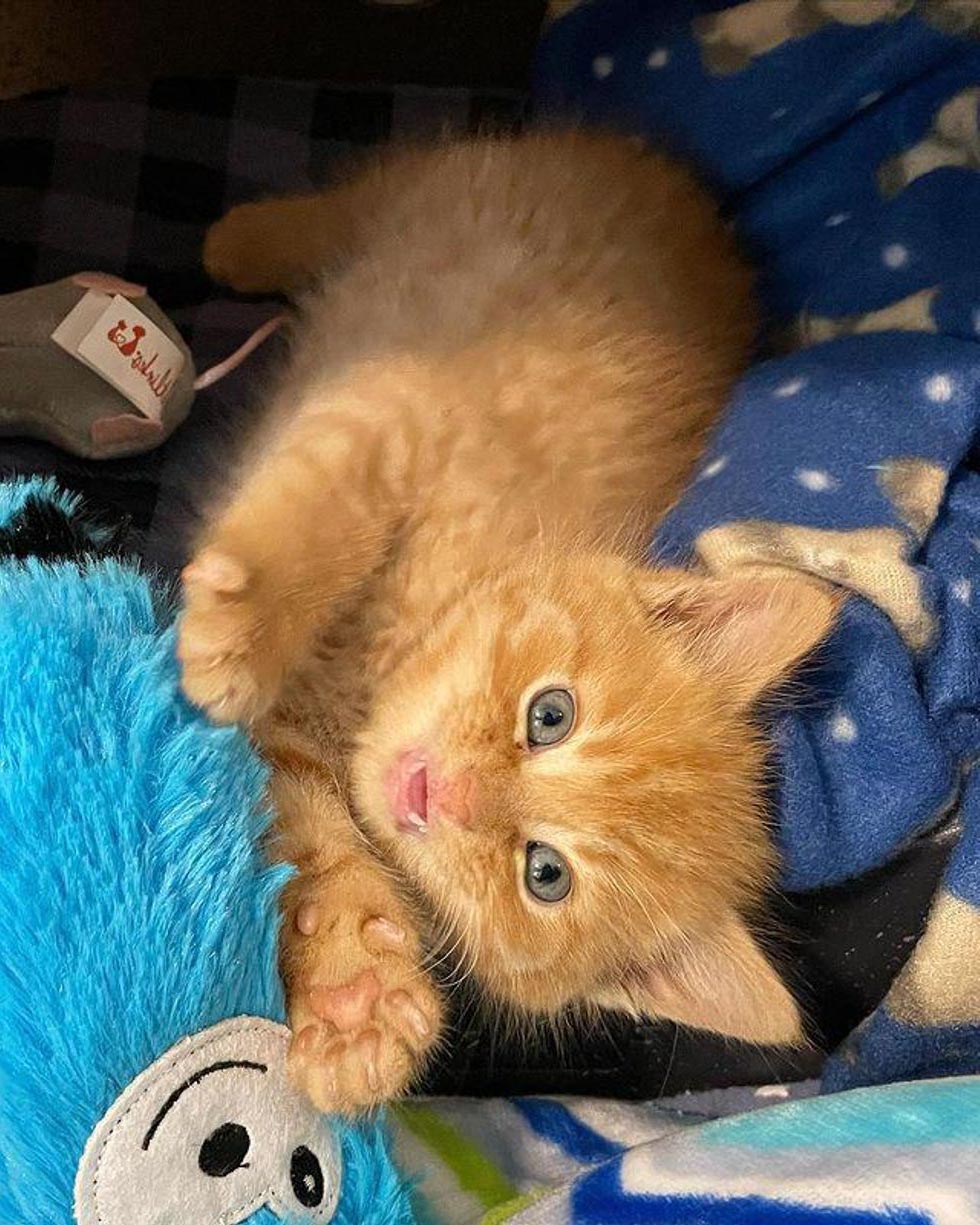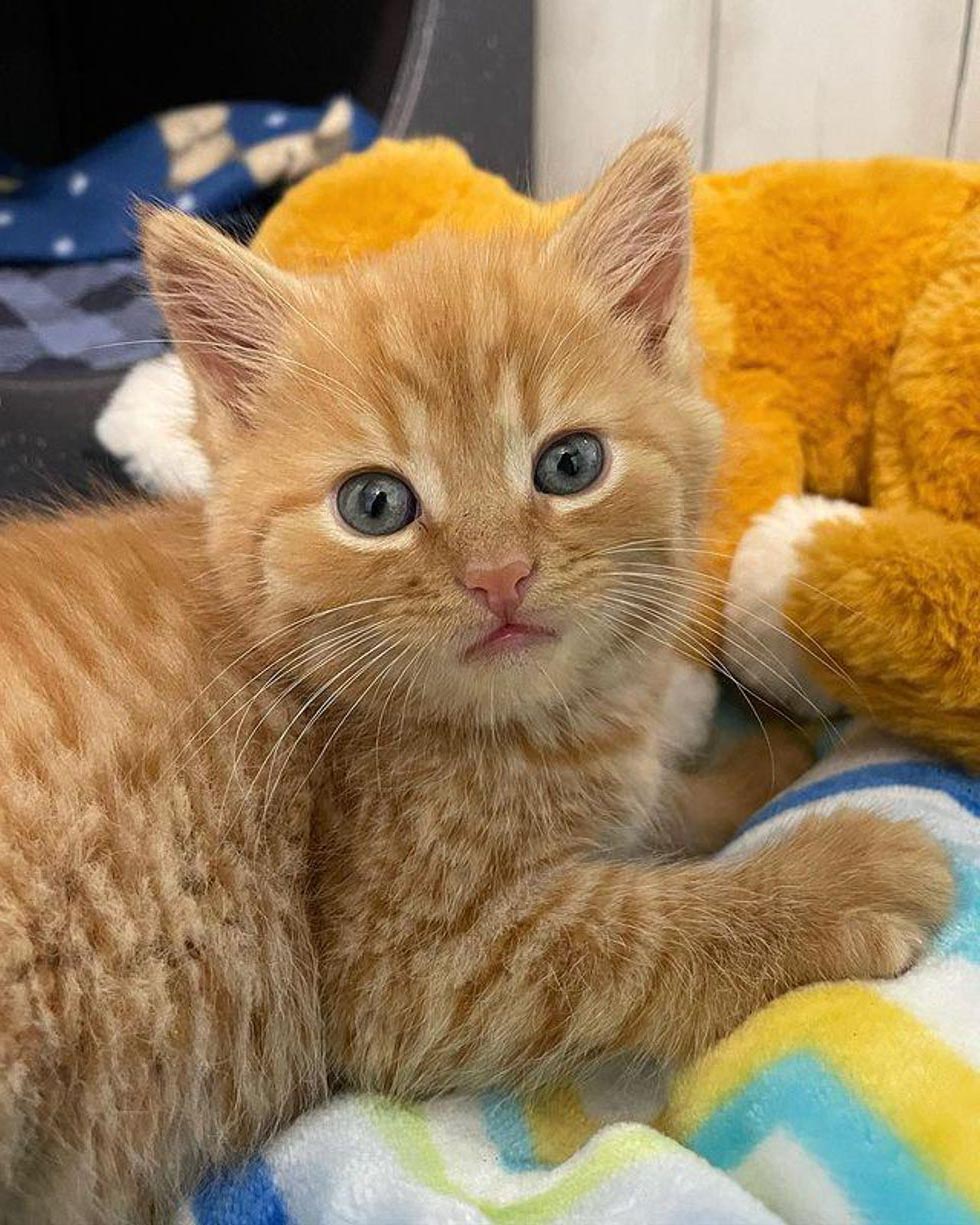 2022年03月01日不久前,一隻小橘貓被送到印第安納坡里斯(Indianapolis)的動物救援組織「IndyHumane」。牠非常膽小,總是想躲起來。志工Jennifer將牠接回家照顧,不僅給牠取名為Butterball,還給牠準備了一個舒適的小窩,並在裡面放了一些柔軟的玩具。