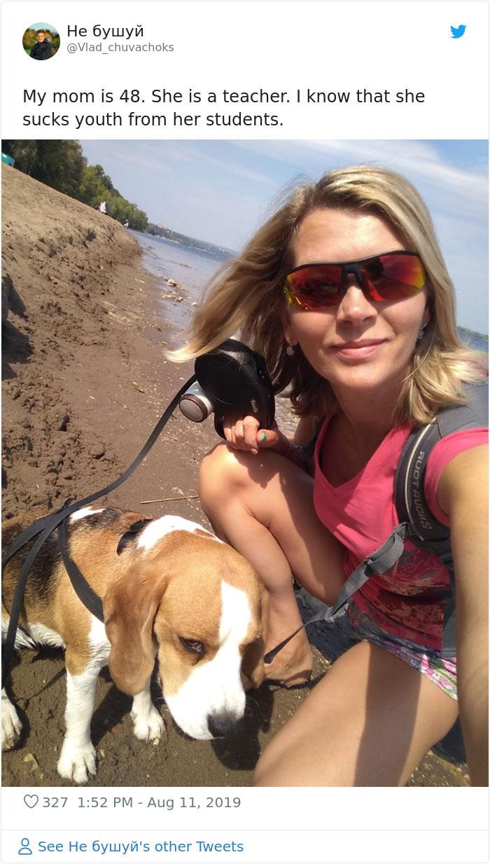▼「我媽已經48歲了,她是一名老師,我懷疑她都從學生身上吸走青春年華。」