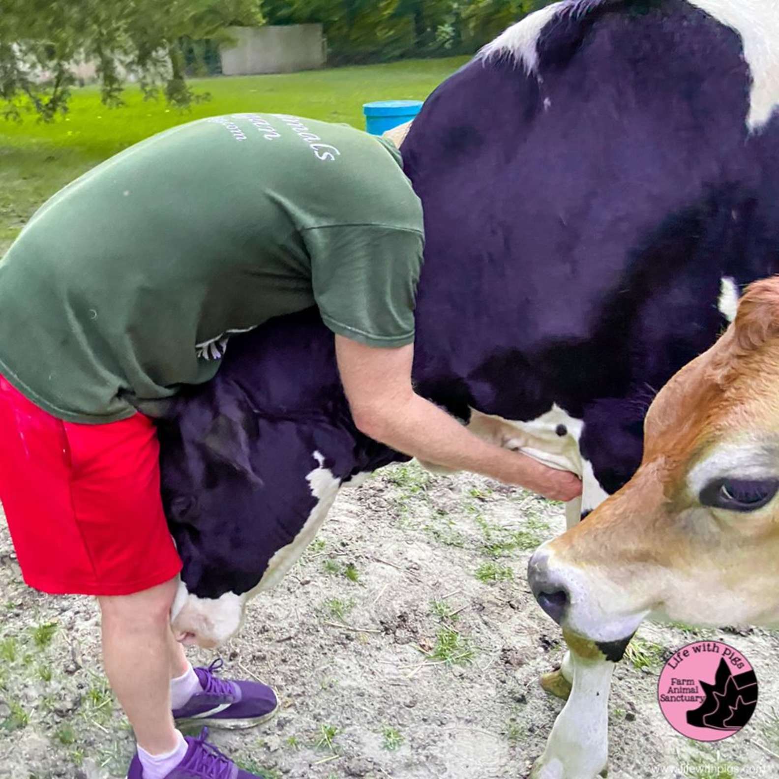 ▼Jenna是一隻變異雌牛,天生有繁殖和泌乳障礙。雖然畜牧業不需要牠,但把拔馬麻卻覺得牠很特別。Ryan說:「Jenna充滿活力,可能因為我24小時都跟牠待在一起,所以牠覺得自己也是一個人吧。」