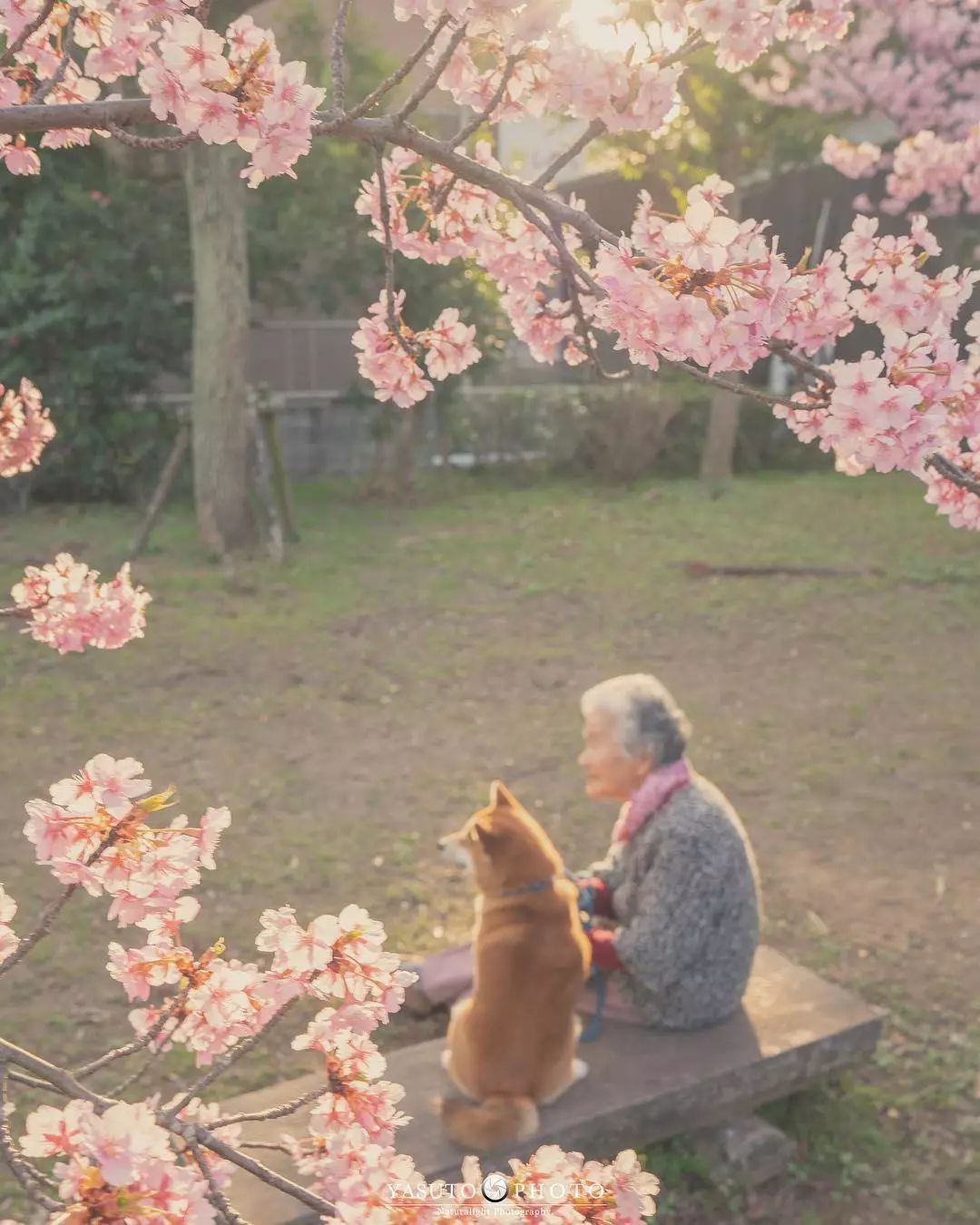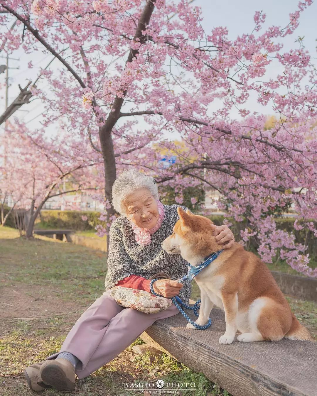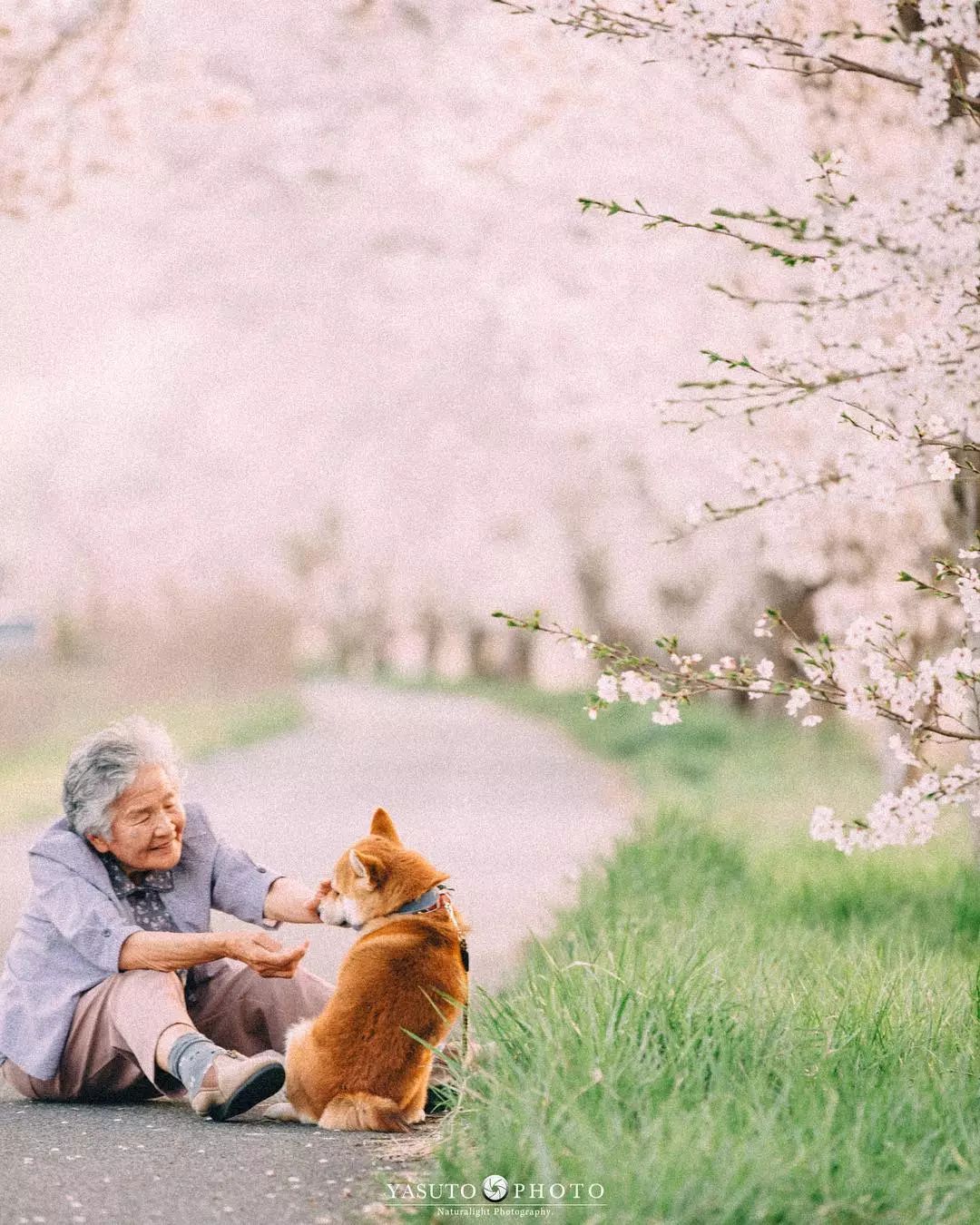 「讓我陪泥一輩子」柴柴和85歲嬤在櫻花樹下合照 網友感動喊:願時光不老