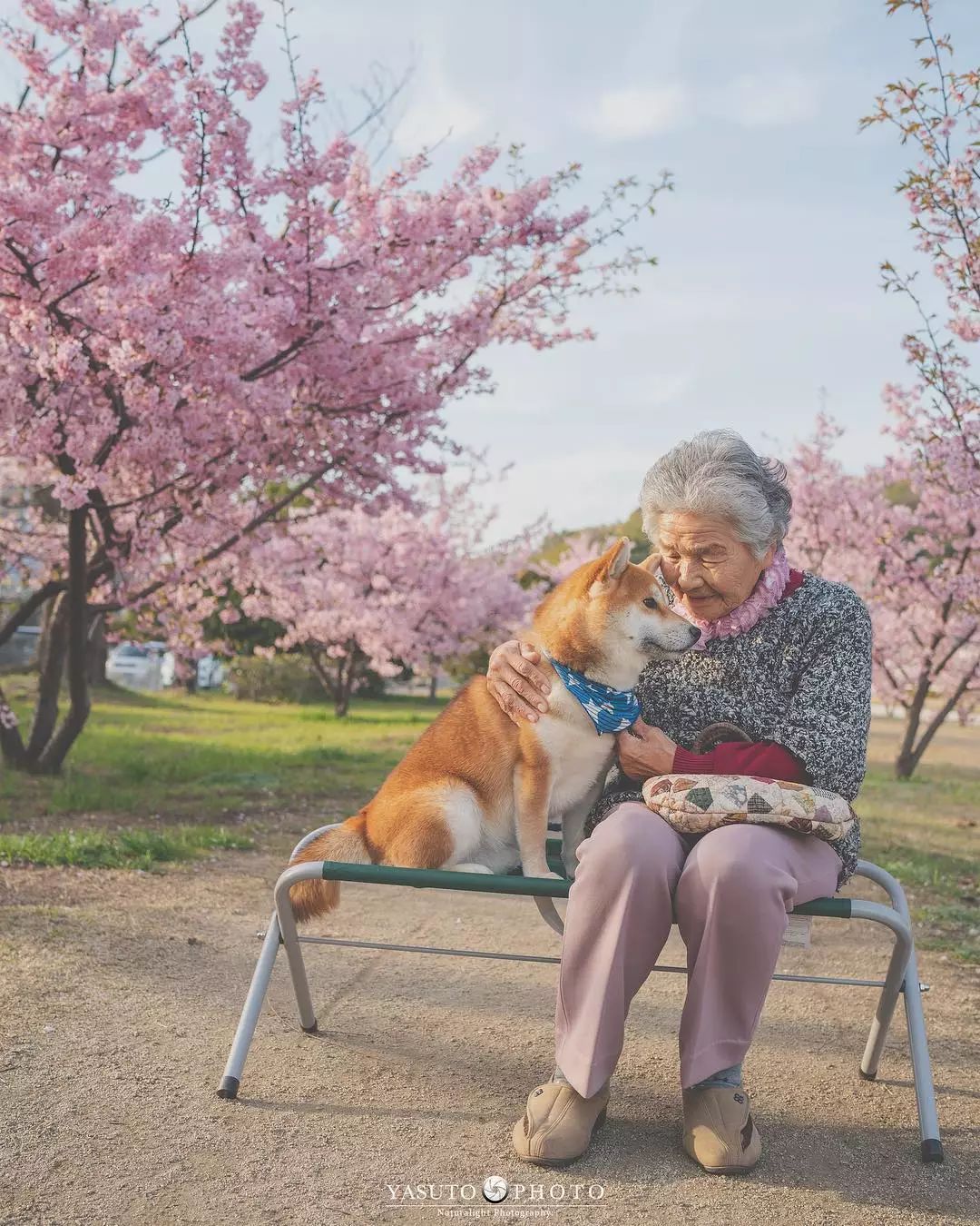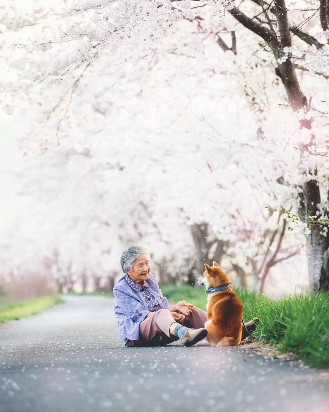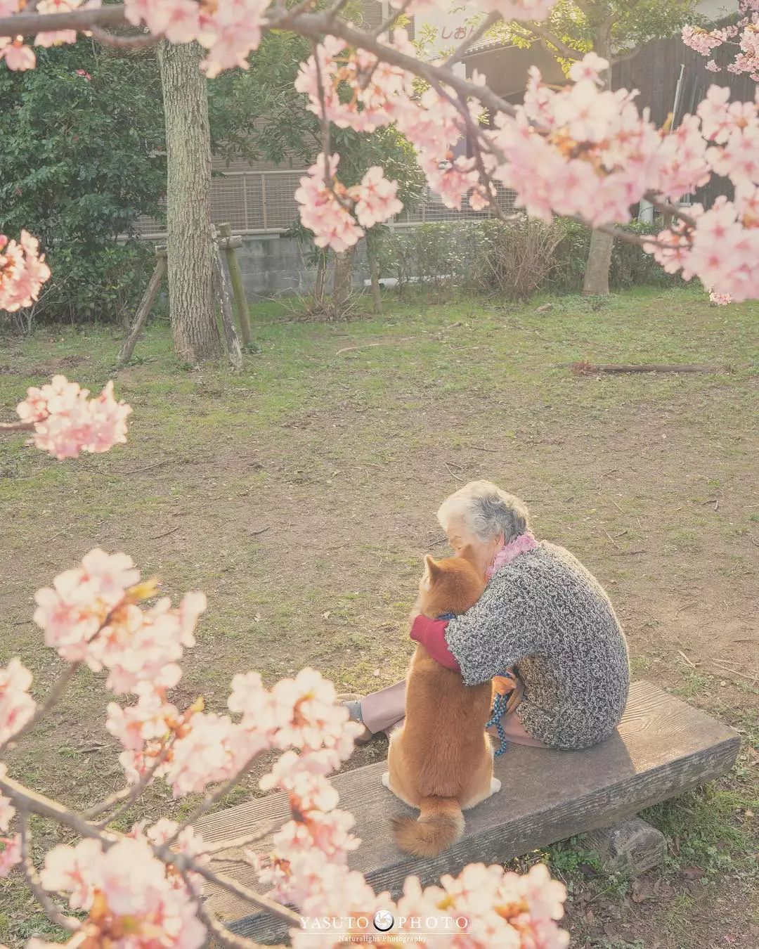 「讓我陪泥一輩子」柴柴和85歲嬤在櫻花樹下合照 網友感動喊:願時光不老