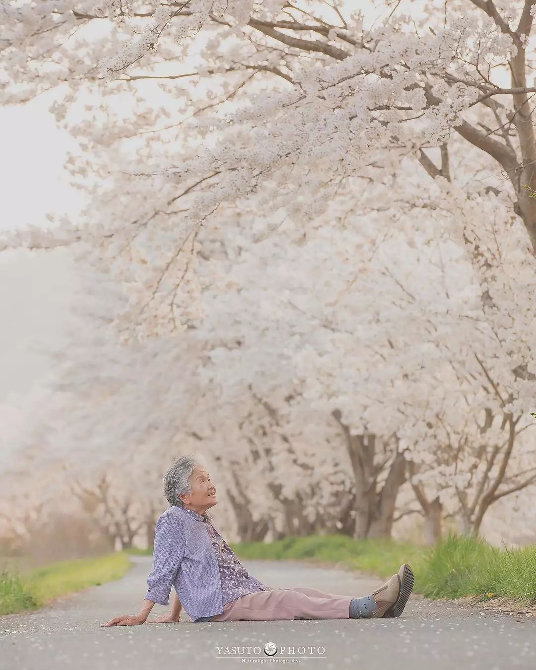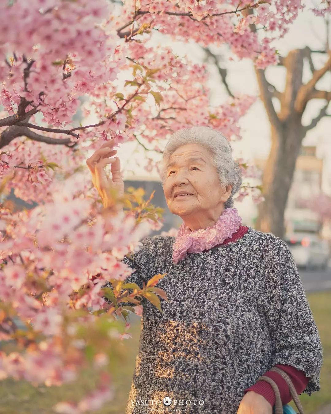 ▼有一天YASUTO對婆婆許諾:「等我出差回來,就帶您去櫻花樹下拍照!」然後這一組照片就出現了。