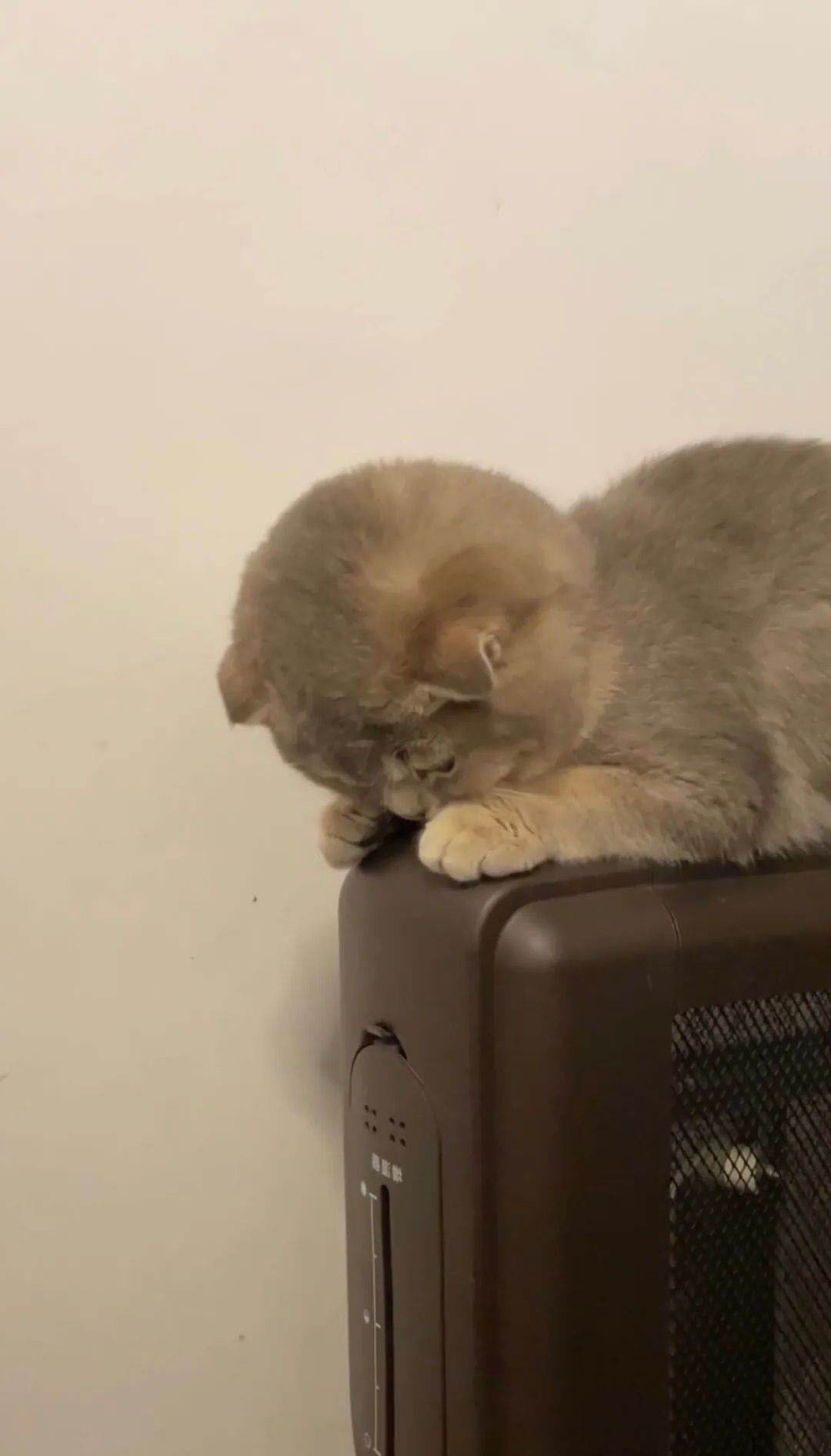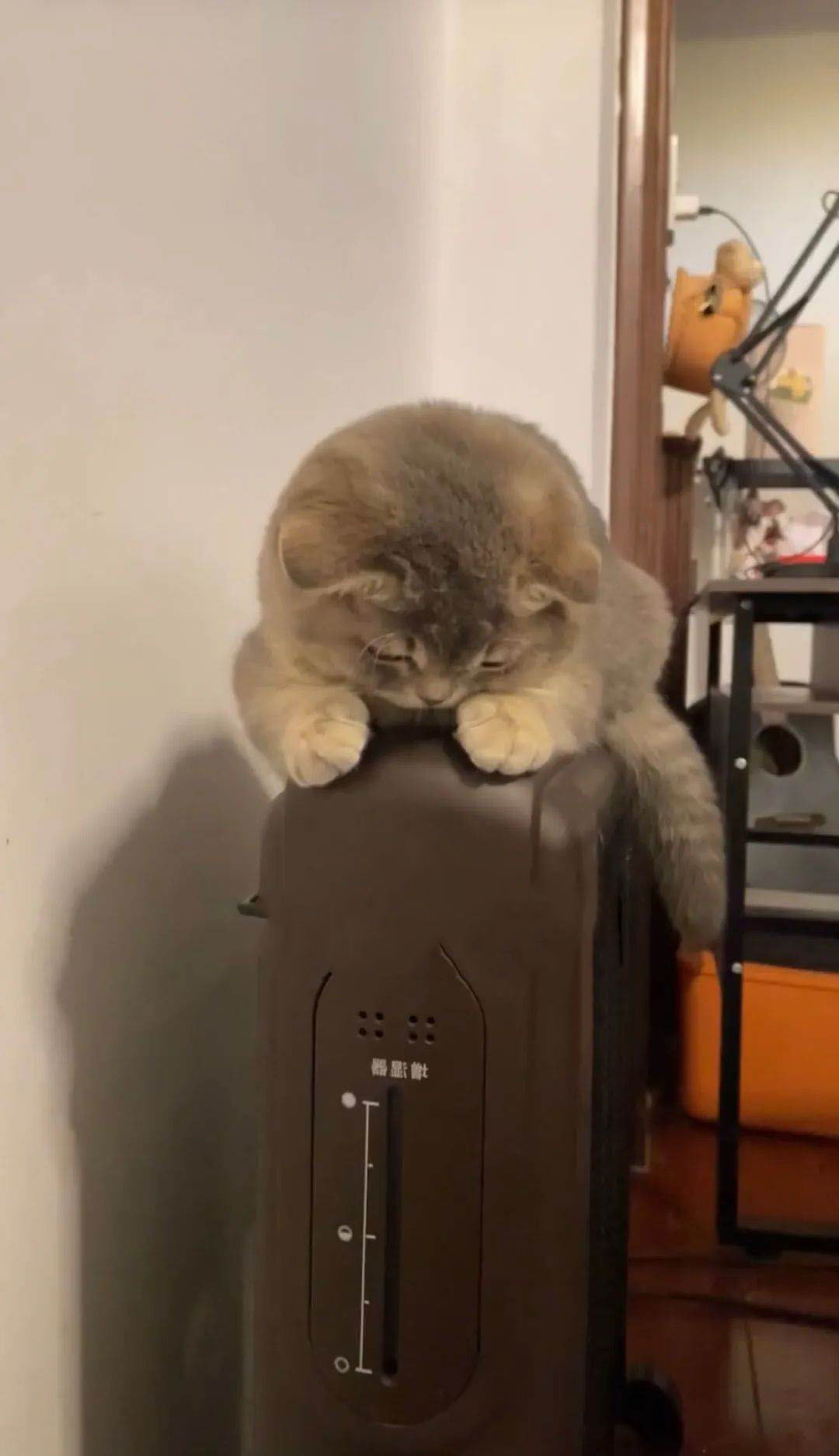 ▼天氣變冷後,飼主將電暖器拿出來用。沒想到貓咪竟然爬了上去,把電暖器霸佔了。飼主擔心貓咪太靠近電暖器會燒到,就將牠抱了下來。正沈浸在溫暖、舒適中的貓咪立刻喵喵叫著撒嬌起來。