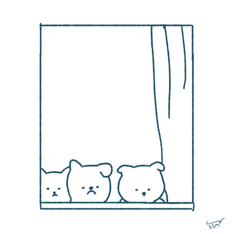 ▼這張照片又在推特引發瘋傳,畫師也將牠們插畫化。雖然畫得很簡單,但表情神還原。