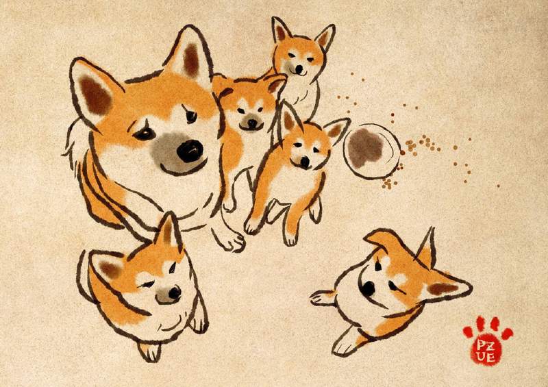 ▼還有畫師以此為靈感創作,把狗媽媽無奈歉疚、小狗們得意洋洋的模樣都畫下來了。