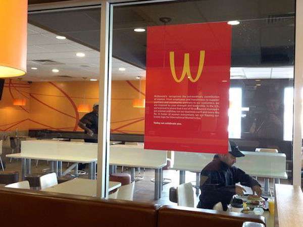 ▼美國麥當勞的標誌曾倒轉為「W」,事實上,這是僅限一天的活動,也就是為了慶祝3月8日的國際婦女節,才會轉為「Women」的首字母。