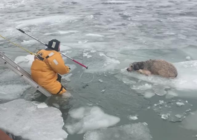 2022年03月12日日前美國密西根州底特律(Detroit)的一隻拉布拉多犬被困在了底特律河的一塊浮冰上。牠全身濕漉漉的,趴在浮冰上瑟瑟發抖,已經快要凍僵了。警察、消防和動物控制中心派人合力救援,終於將狗狗拉上岸。網友們看到救援影片後大讚救援人員勇敢,紛紛按讚。