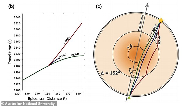 ▼科學家們利用國際地震中心捕捉到的地震波在地球內部的「傳播時間數據」,搭配搜尋演算法,發現地球內核中鐵結構發生改變。也就是說,距離地球中心約650公里處,存在著一條從未被發現過的「新界線」。