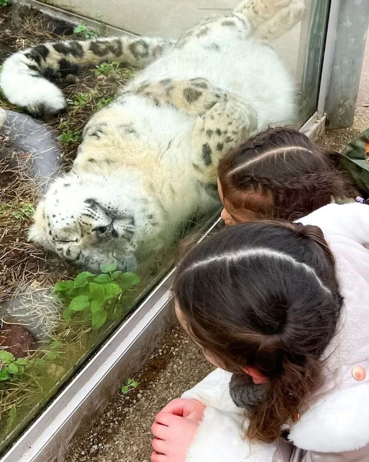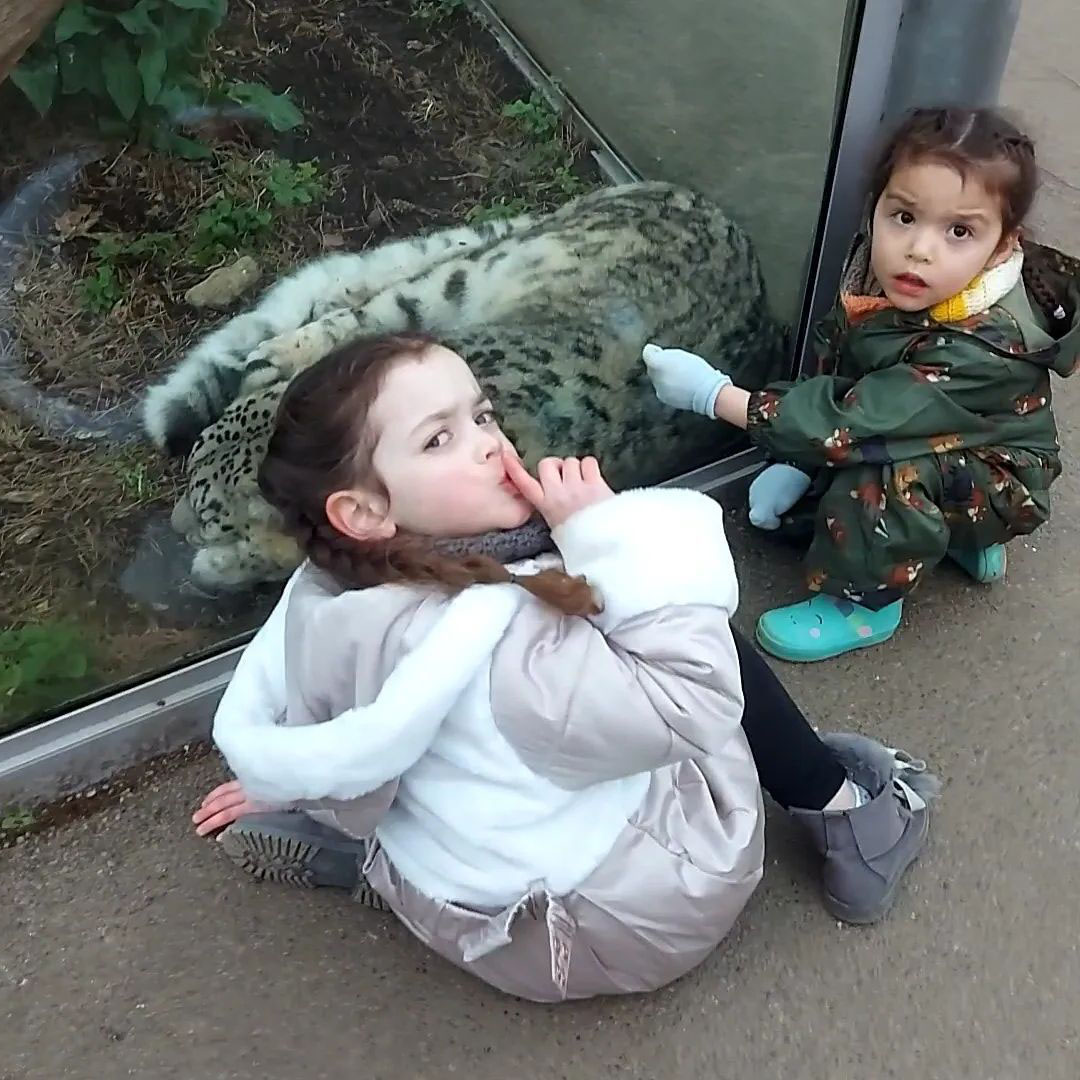 女孩們專心看小雪豹睡覺的模樣真的超有愛。她們不能跟小雪豹交流,也沒有跟小雪豹互動,但整體的氣氛卻非常溫馨。這樣的畫面非常治癒,這兩個小女孩太善良,太貼心啦~