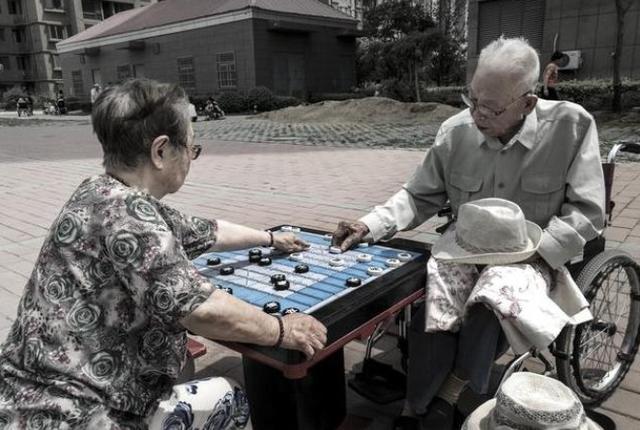 ▼兩人偶爾也會曬太陽下棋,這是屬於老年人的智力運動。