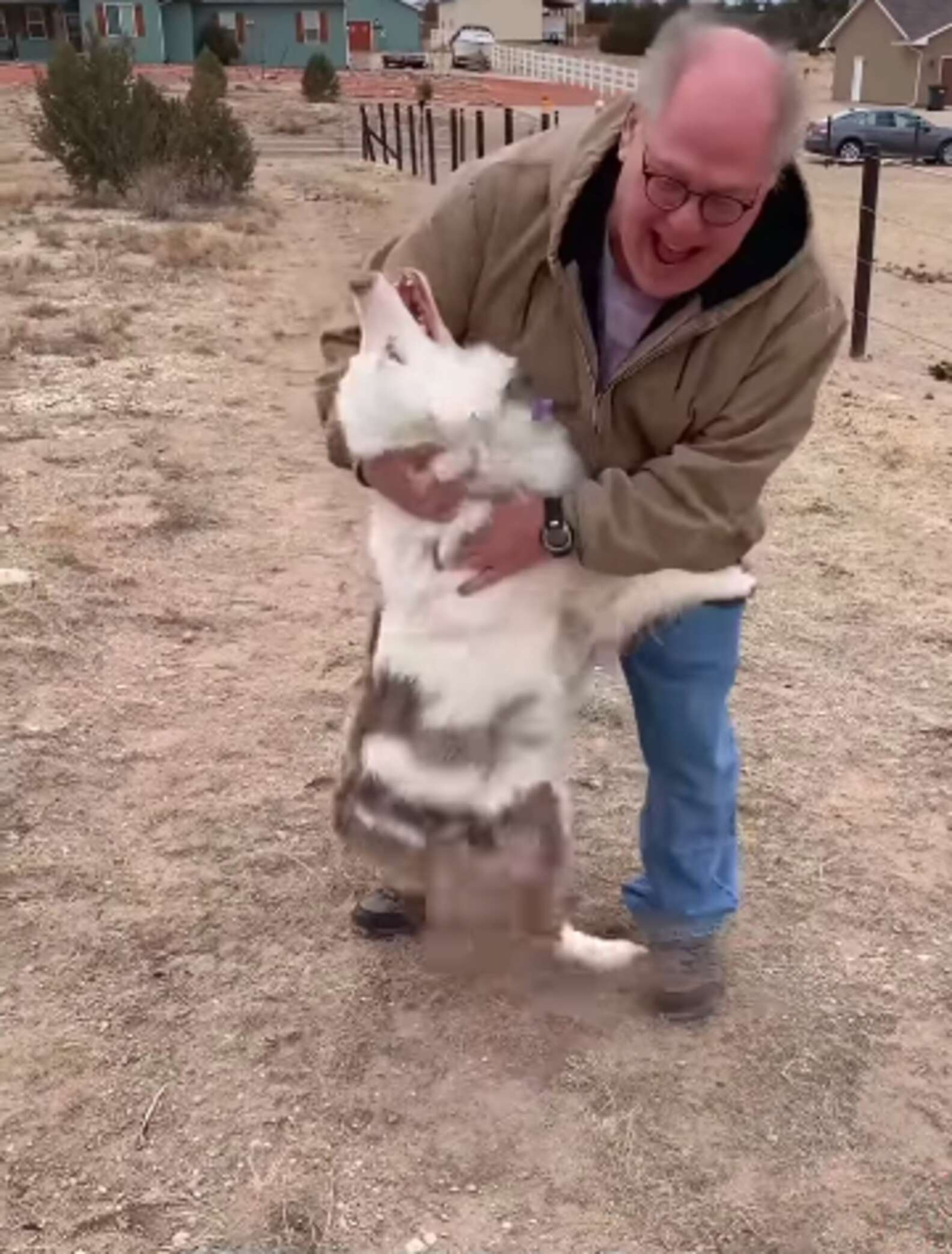 ▼Bitsy狂搖尾巴,撲到阿公的懷裡,希望他知道自己有多思念他。他們相擁在一起的畫面超感人。Hayden表示,Bitsy絕對不會忘記每一個關愛牠的人,現在他們一家終於團聚,希望以後再也不會分開了。