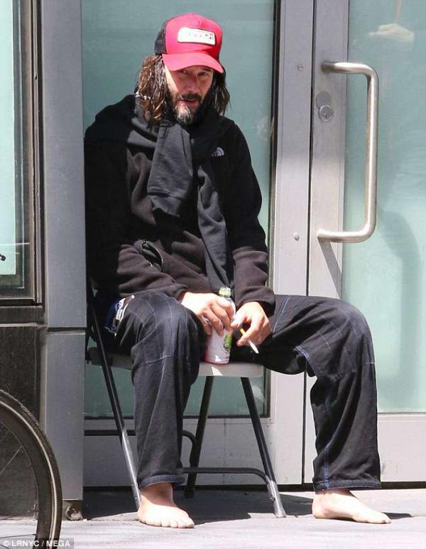 ▼基努李維曾多次被拍到坐在公園的長椅上吃簡單的午餐,或跟街友聊天、甚至聊到在路邊就地躺下。