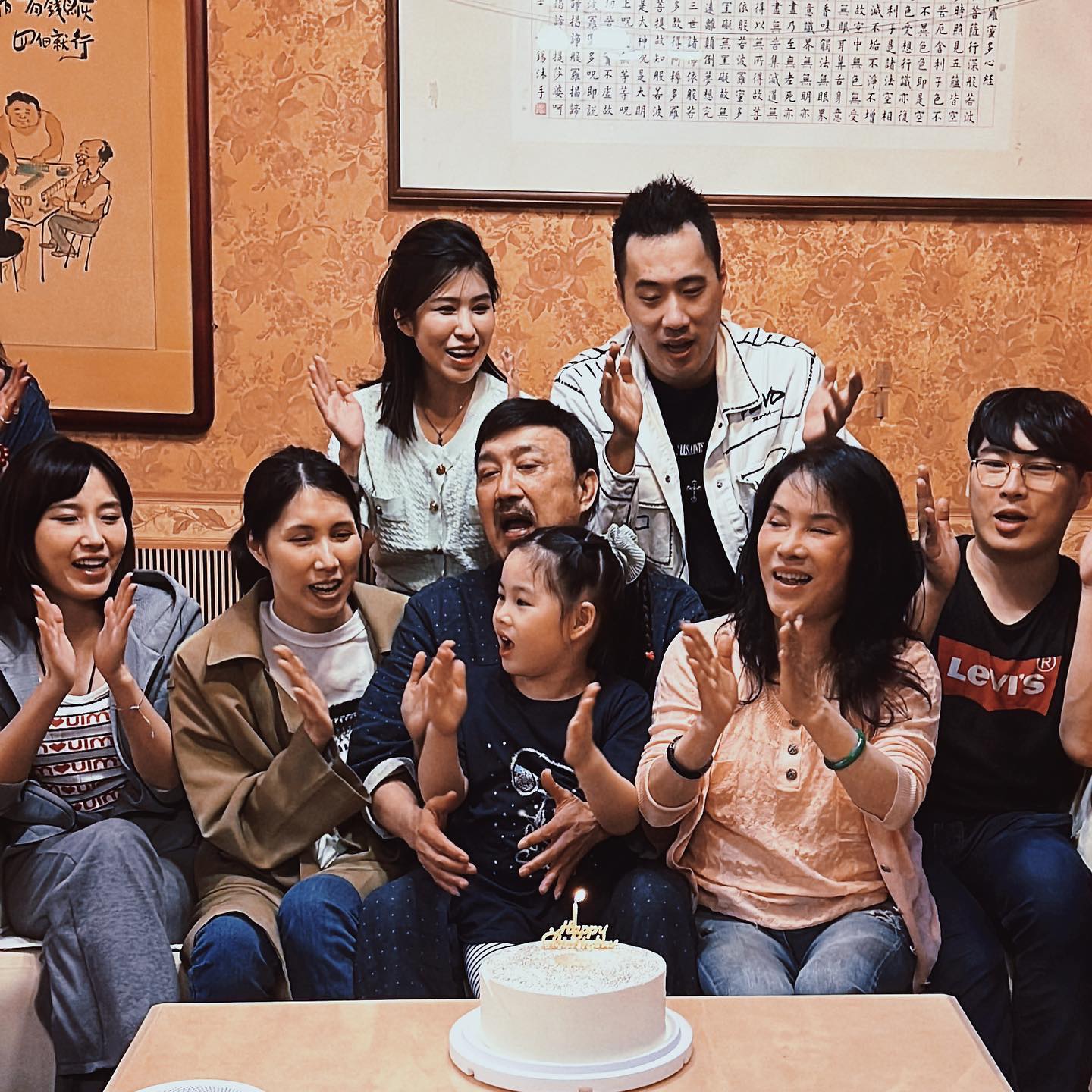 ▼在另一張照片中,余祥銓抱著姊姊余苑綺,姊弟兩人的感情非常親密。後來余天還讓余苑綺的女兒坐在自己的大腿上,一家人圍著蛋糕唱生日歌,最後大家一起吹熄蠟燭,看起來很幸福。