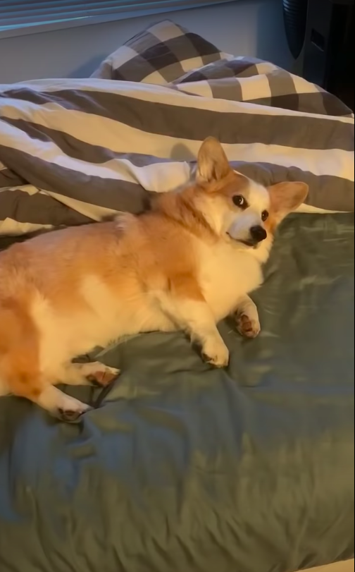 ▼主人解釋說,平時他都是早上10點帶狗狗外出散步的,但那天要載女朋友上班,只能提前帶狗狗散步,早上6點就把家中的柯基犬「路易」叫起來。提前4小時被叫醒,路易顯然沒有睡飽,懶洋洋躺在床上不肯起來。