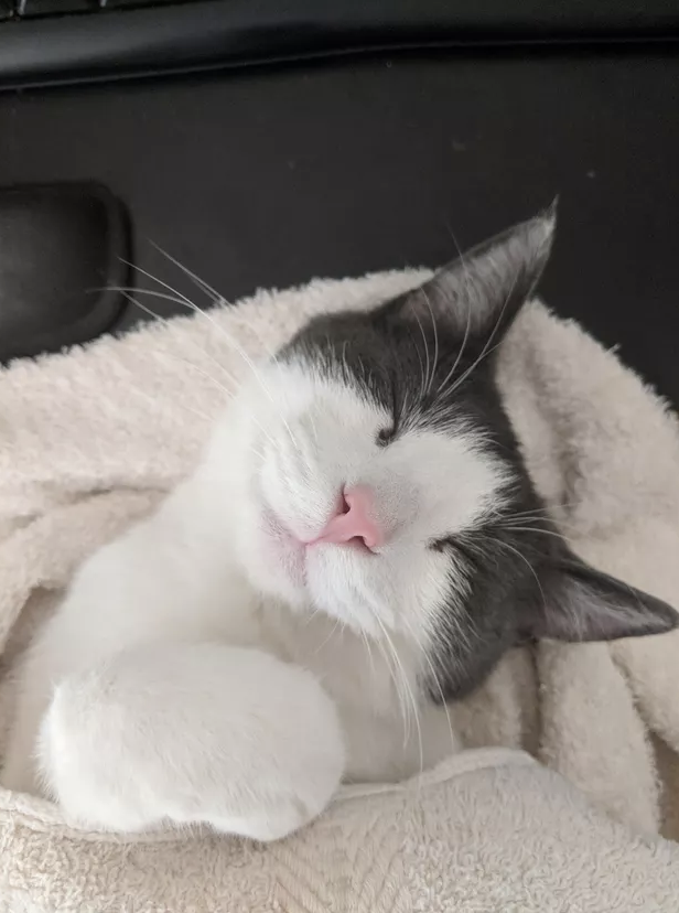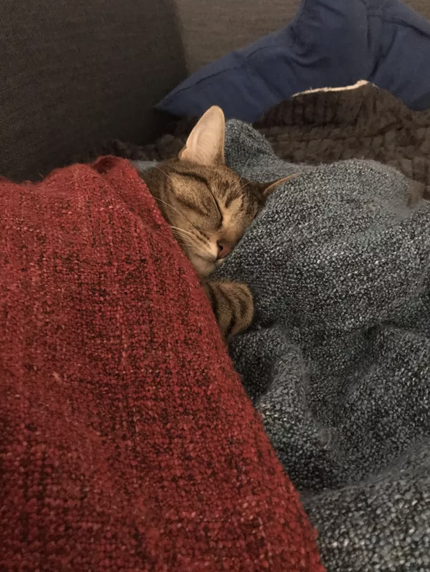 ▼毯子太舒服,不知不覺就睡著了。