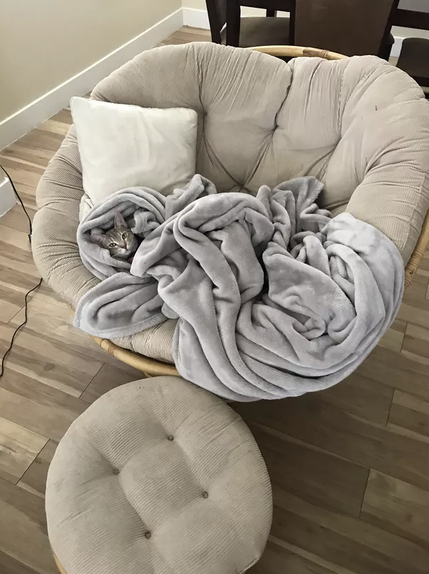 天氣冷颼颼的時候,貓咪最愛鑽進毯子裡取暖。這是天冷的時候才能看到的限定風景,主人們一定要把握時機,好好欣賞這療癒的畫面!