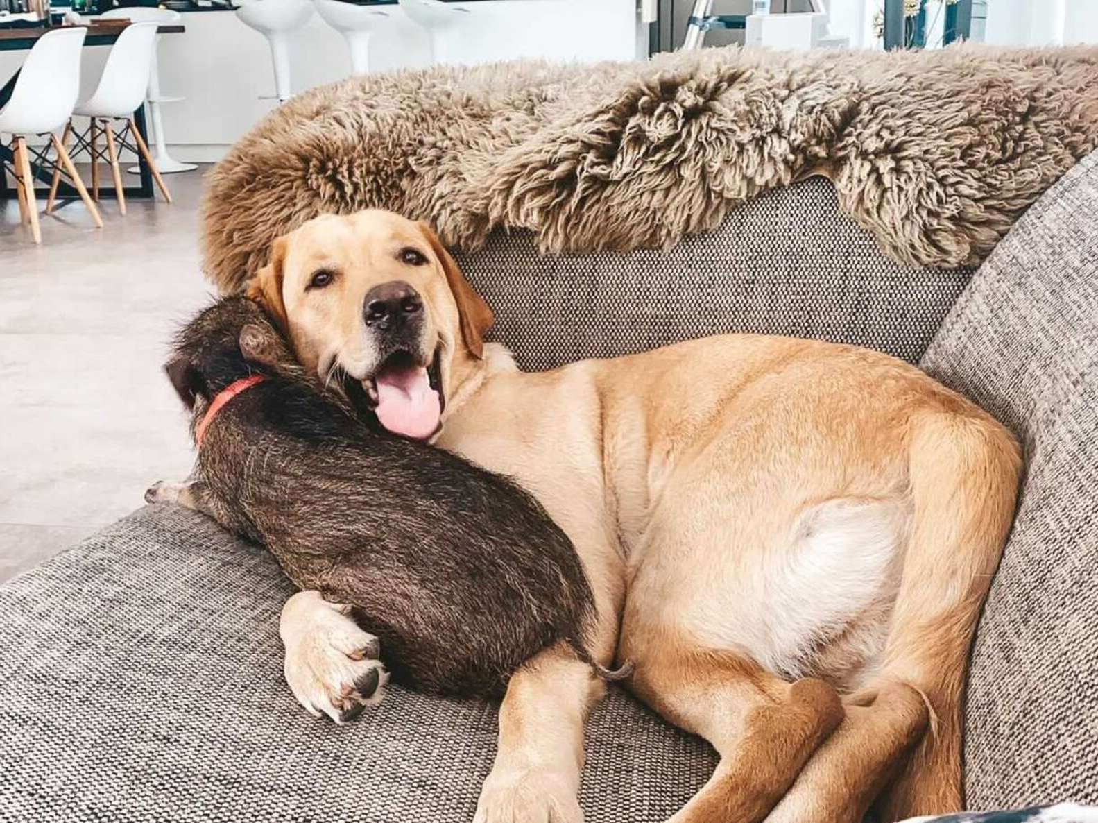 ▼Dora家中有4隻寵物狗,她本來擔心Yezhu跟狗狗們相處不好,沒想到Yezhu很快就融入了這個大家庭。